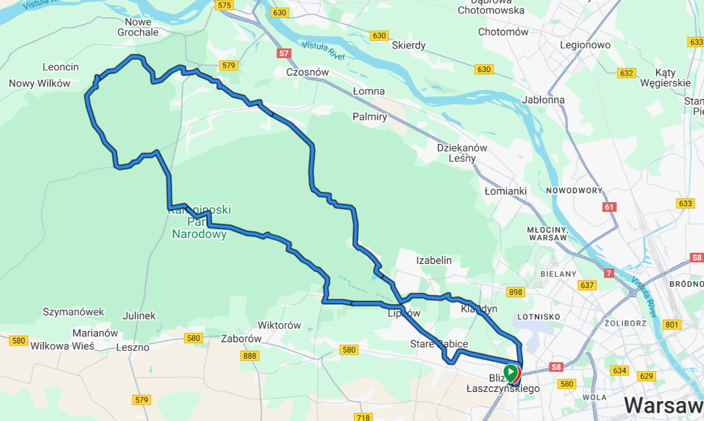 Pogoda jest już całkowicie jesienna, dlatego nie planujemy postojów na trasie i będziemy starali się jechać równym tempem. W połowie trasy zatrzymamy się na obiad w restauracji Folwark Batorówka, gdzie będzie można się trochę ogrzać. Tracka na ustawkę skomponował kolega Marek, który nie zaznał okropnych piaskowych odcinków przejeżdżając trasę 🙂